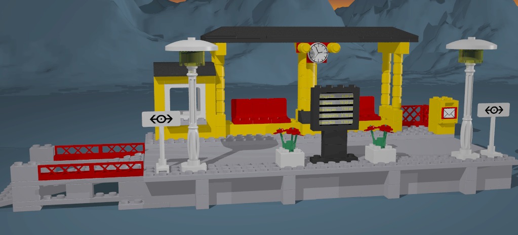 The odd size of the image comes from the aspect ratio of the photograph on the box, which I tried to imitate. I determined later that their actual shot must have had the model in the right side of the frame, and been hand cropped to show only the station, because it's impossible to fill the frame with the station model and still look at it from the same distance and angle as the box photo.