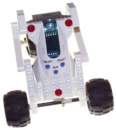 The only interesting program the Micro-scout can run is Seek Light, during which it backs up until the internal light sensor (on the other end from the motor) is activated, at which point it starts going forward. Actually it doesn't do this very well. Usually it doesn't see any light unless it's a flashlight aimed right at the light sensor.