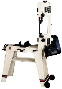After I used a large commercial metal bandsaw to cut some stock for a project I was hooked. For my small garage workshop I got a Jet 4x6" bandsaw at my local Western Tool Supply. You can order it from their catalog or look at the Jet catalog entry (try this other page if they broke that link).